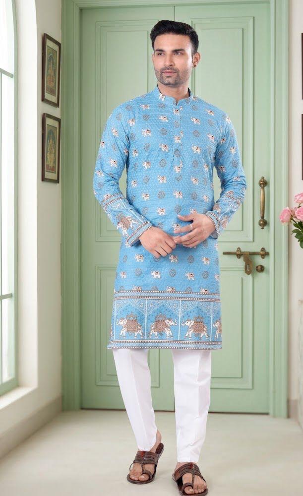Elevate your traditional style with this elegant men’s designer chikankari kurta, crafted with intricate detailing that reflects timeless craftsmanship. The delicate chikankari work adds a refined and graceful touch, making it perfect for both festive and casual occasions.