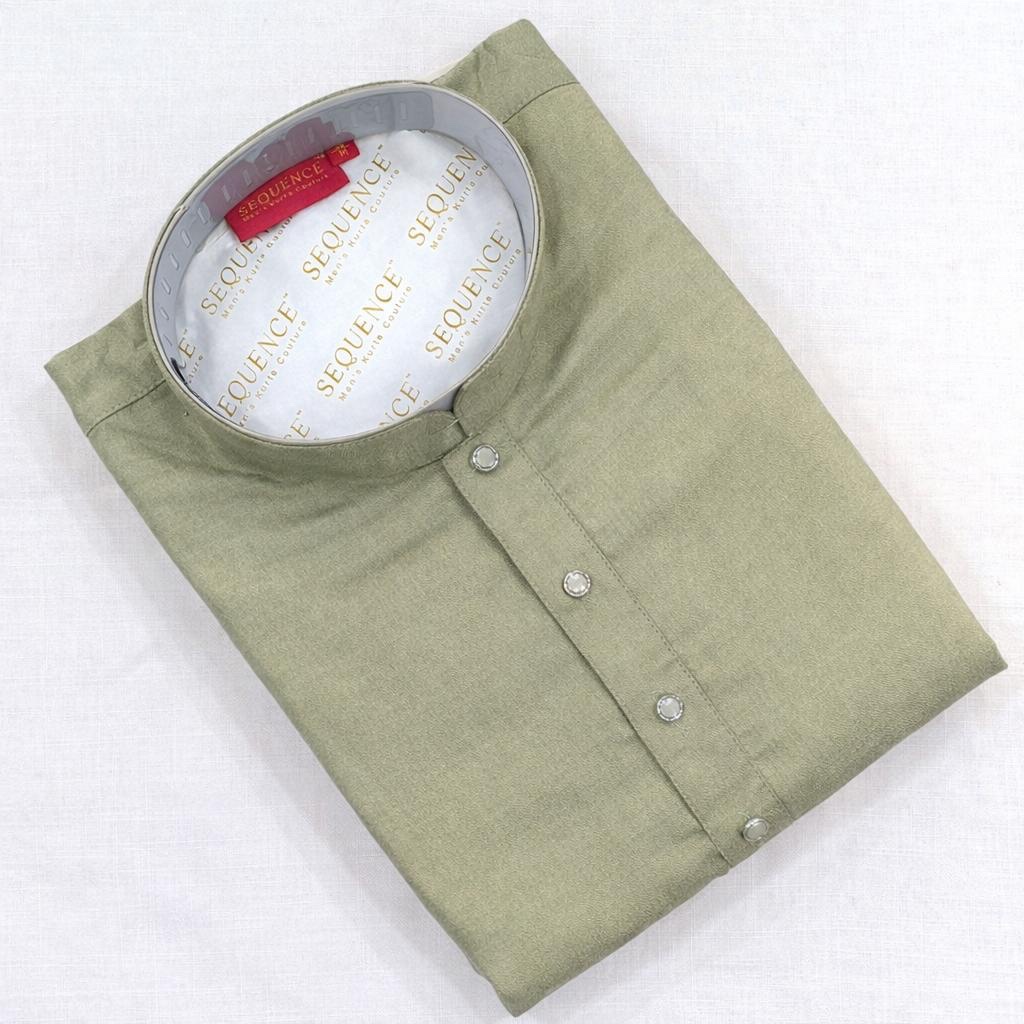 Keep it minimal and elegant with this sage green men’s designer kurta, designed in a subtle plain finish for a clean and refined look. The soothing color and simple styling make it a versatile choice for both festive and casual occasions.
