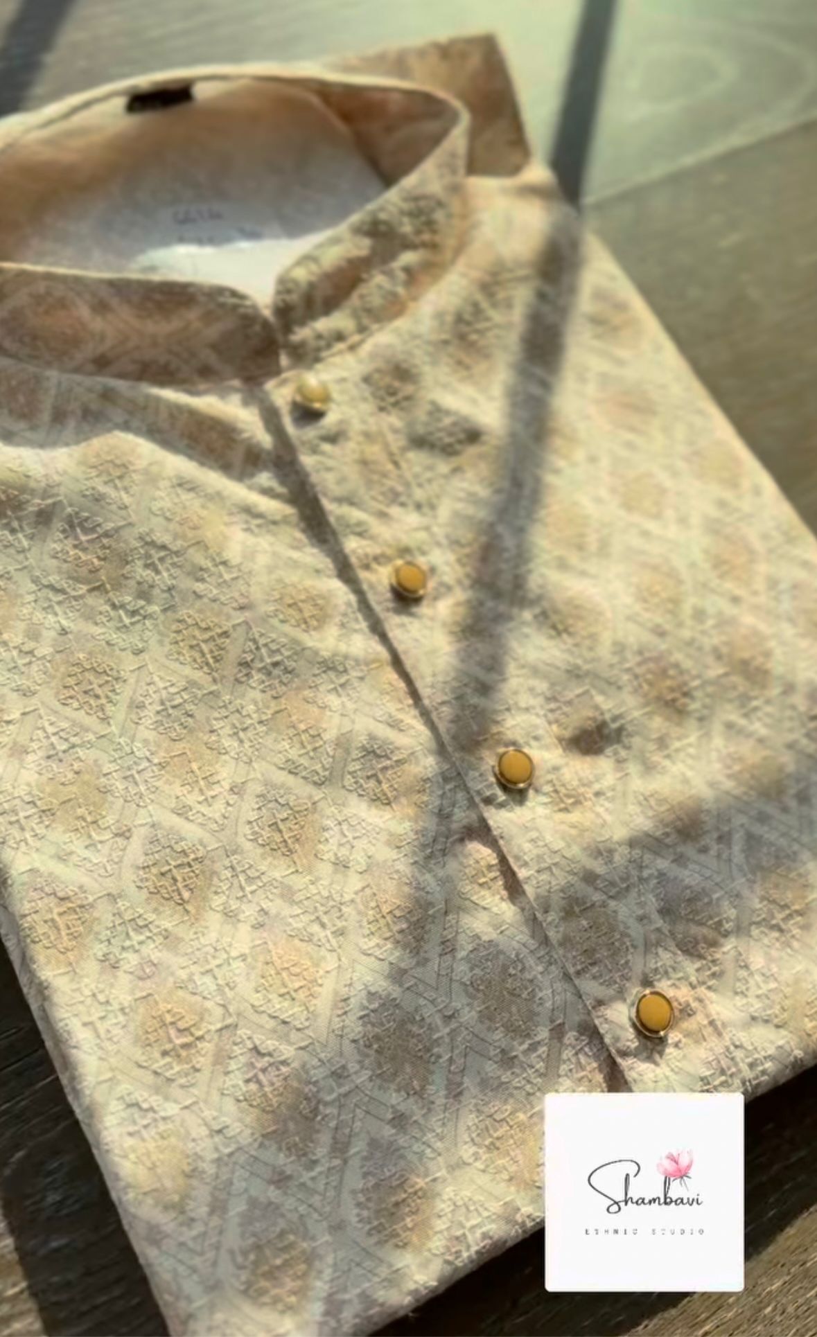 Crafted in soft beige cotton, the kurta features intricate Chickenkari embroidery. Pair it with matching white pajama pants for a stylish look that’s both comfortable and fashionable.