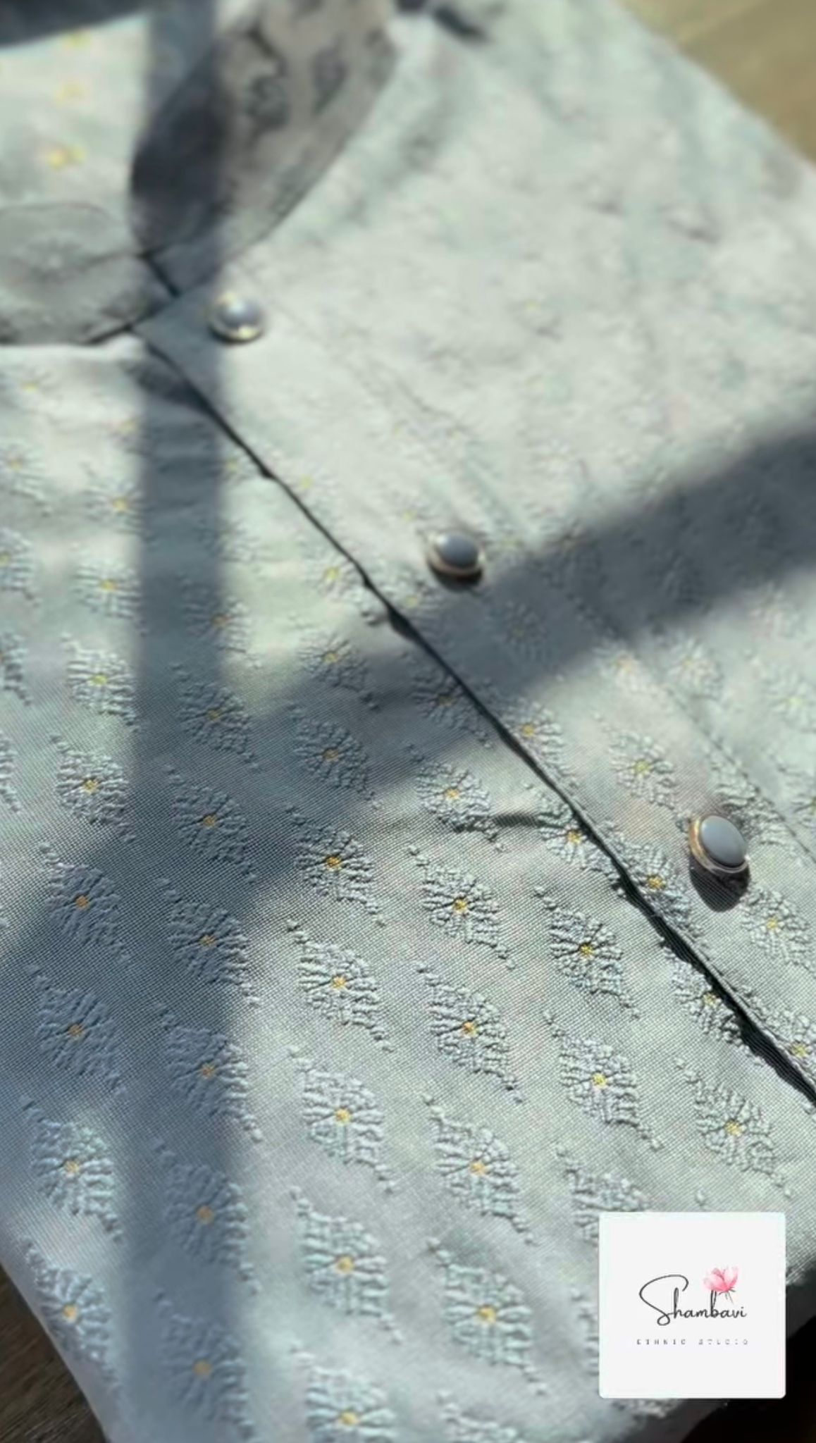 Luxurious blush grey silk kurta with subtle self pattern.
