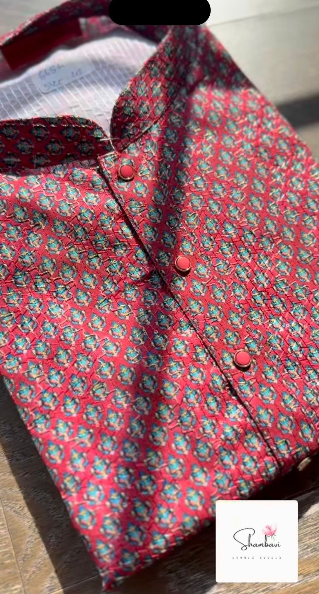 Crafted from designer maroon silk, this kurta features intricate thread weave and blue butti all over. Pair it with matching white pajama pants for a complete look. Perfect for formal occasions or casual nights out.