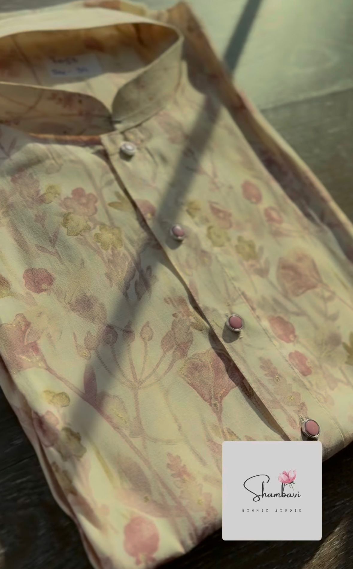 Crafted from off-white floral-patterned super soft silk, paired with matching white pajama pants. Perfect for smart casual wear or evening gatherings.